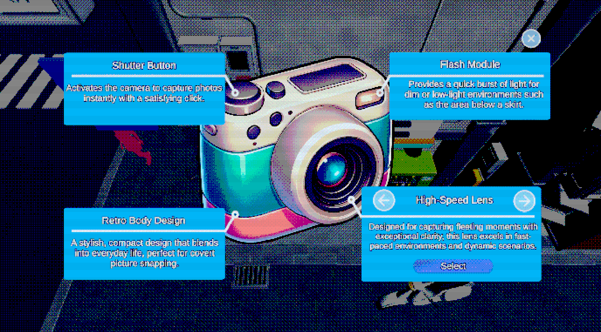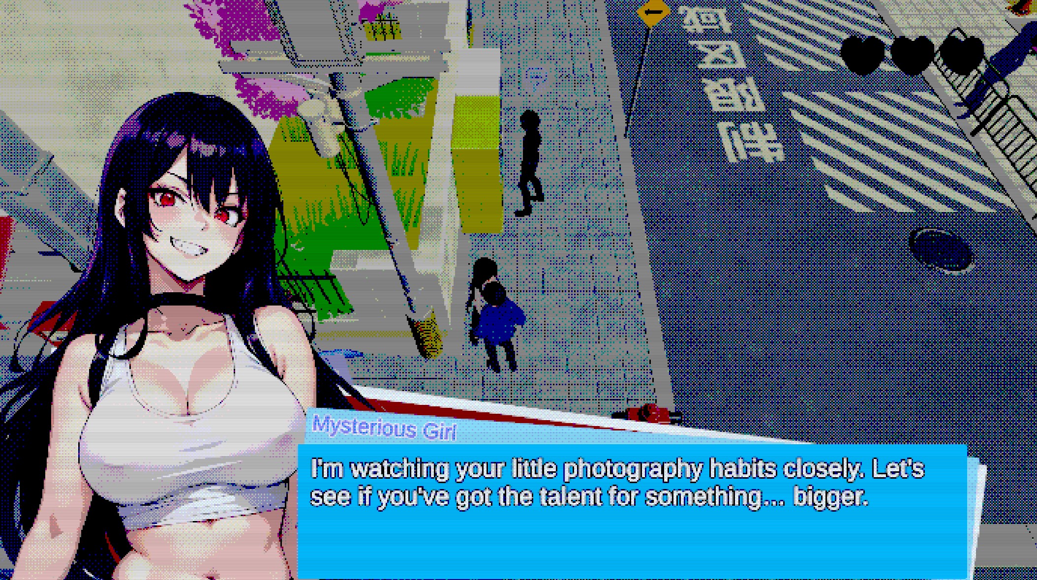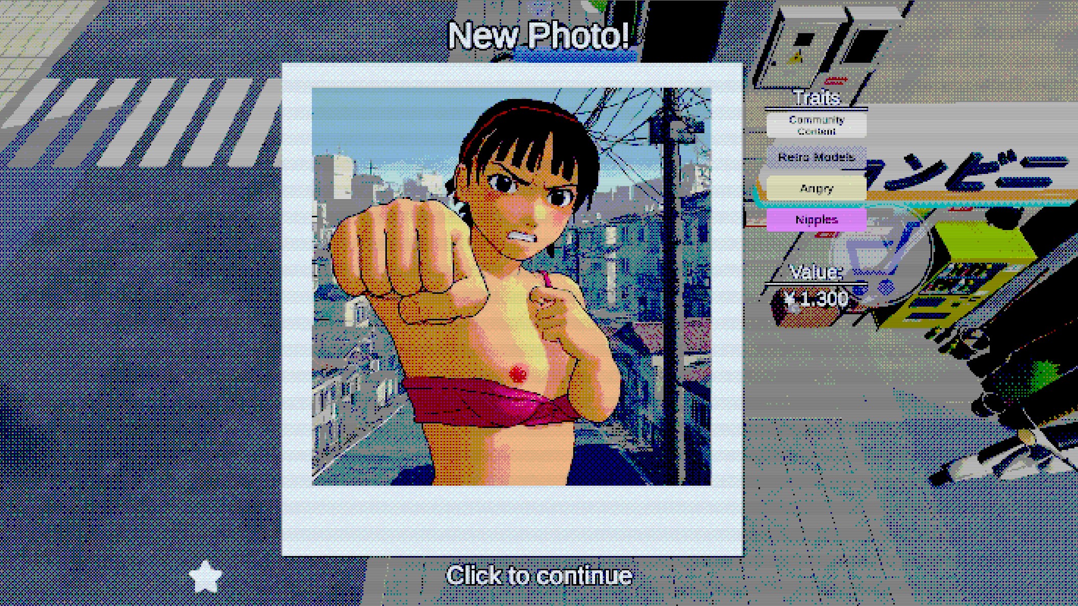 Explore a 3D open-world suburb of Tokyo, search for photo targets, complete your collection, sell your photos, buy upgrades, and go on dates.